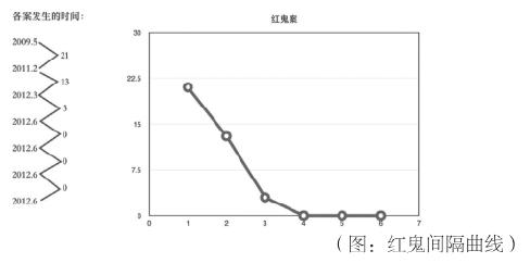 又说:“红鬼系列案,因各案之间并不是一个凶手所为,相比连环杀人案的无序,这是有组织有计划的邪教犯罪行为,又因这系列案件的示众性质,以及传播恶的目的,我们可以认为,如今暴露出来的这七起命案就是所有命案,将这七起命案作案的时间间隔画成曲线,可以看到是一条下滑线。”